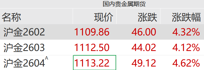 国内期货夜盘,沪金、沪银主力合约同步走高。