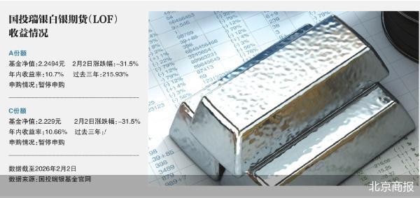 2月2日,国投瑞银白银期货(LOF)A/C份额跌幅均达31.5%,创公募基金单日跌幅纪录,而且该幅度已突破LOF场内10%的涨跌停限制,以及国内白银期货合约单日最多17%的跌停幅度。