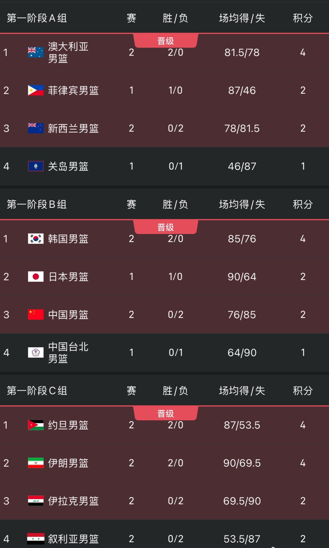还有4场小组赛,中国男篮将在主客场各碰中国台北和日本男篮。然后第一轮4个组的前三名(共12支)将晋级预选赛第二轮。第二轮2个组,最终每个小组的前三名及成绩最好的第四名队伍(东道主卡塔尔除外)将获得2027年国际篮联篮球世界杯参赛资格。