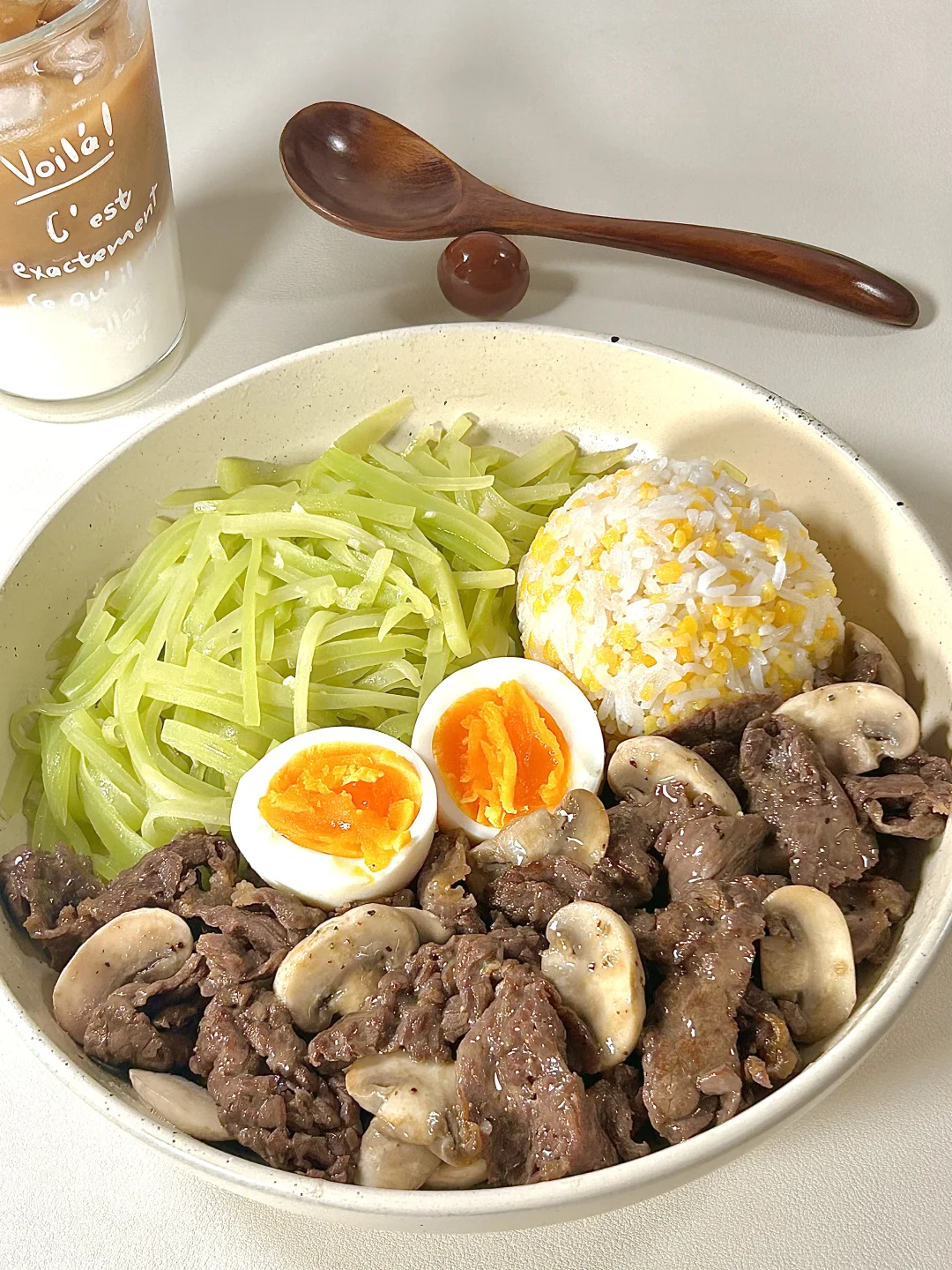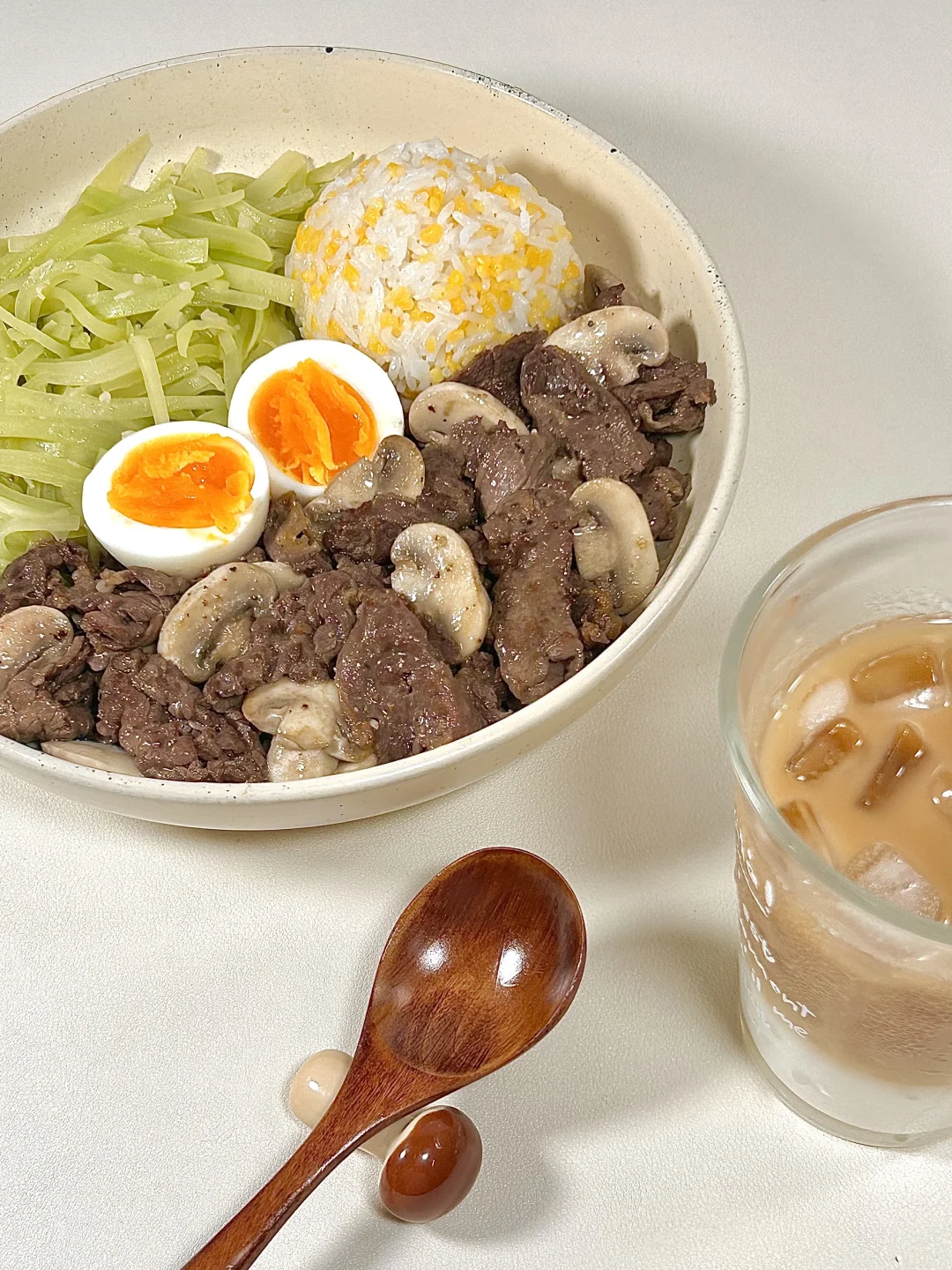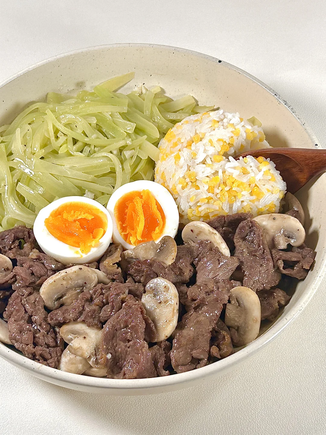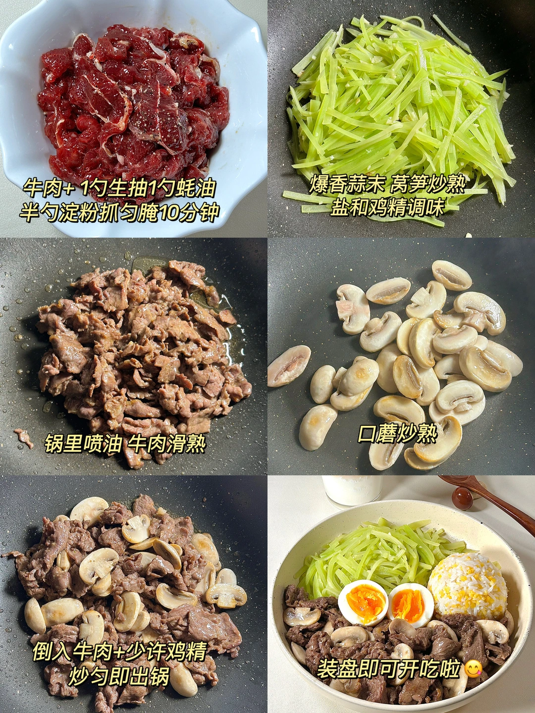 今日减脂餐吃牛肉滑口蘑莴笋丝拼盘! 管理期也可以吃好吃的饭饭🥣 📝食材: 莴笋+牛肉+口蘑+一拳头玉米饭 🫕做法: 步骤在上图⬆️ 营养丰富的晚餐 做法简单,吃得舒服🥰 ✨玉米饭: 📝白米与玉米碎1:2比例~电饭煲焖熟