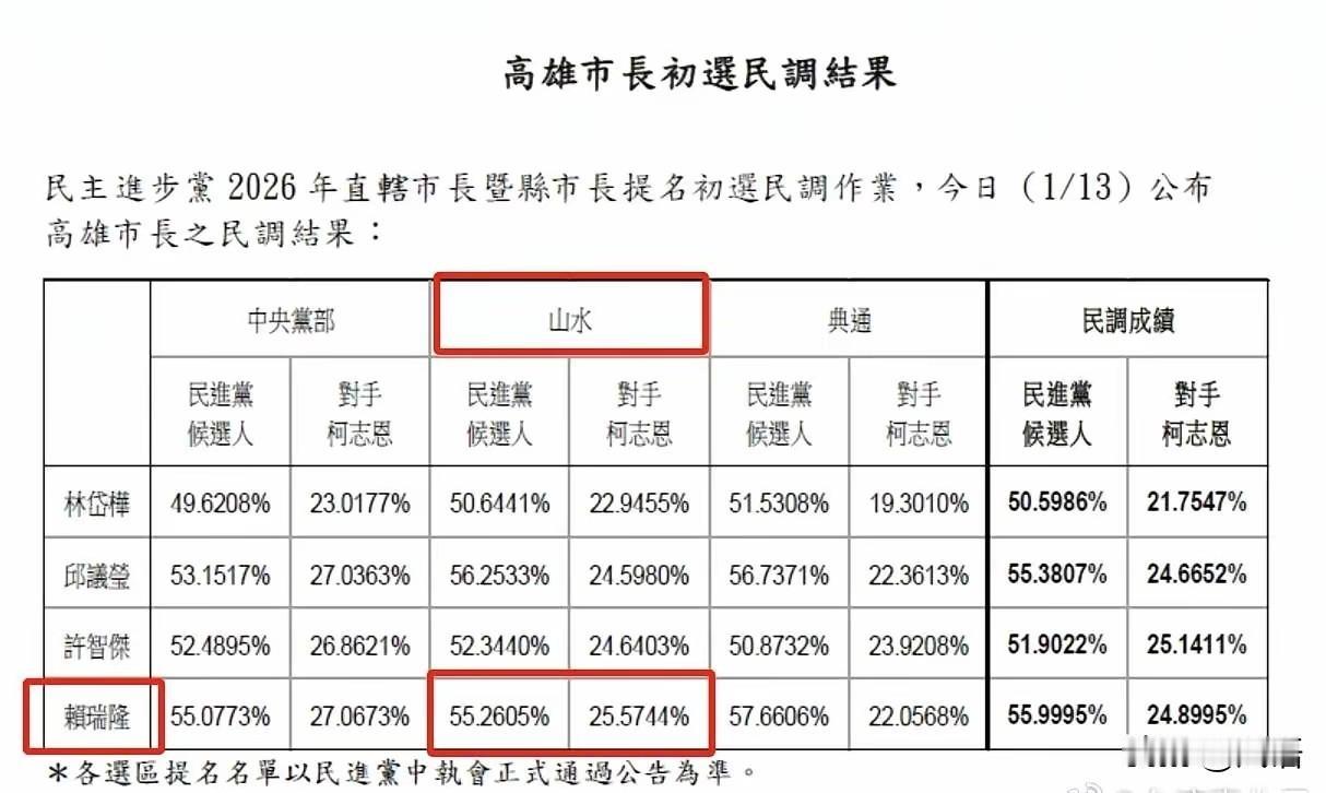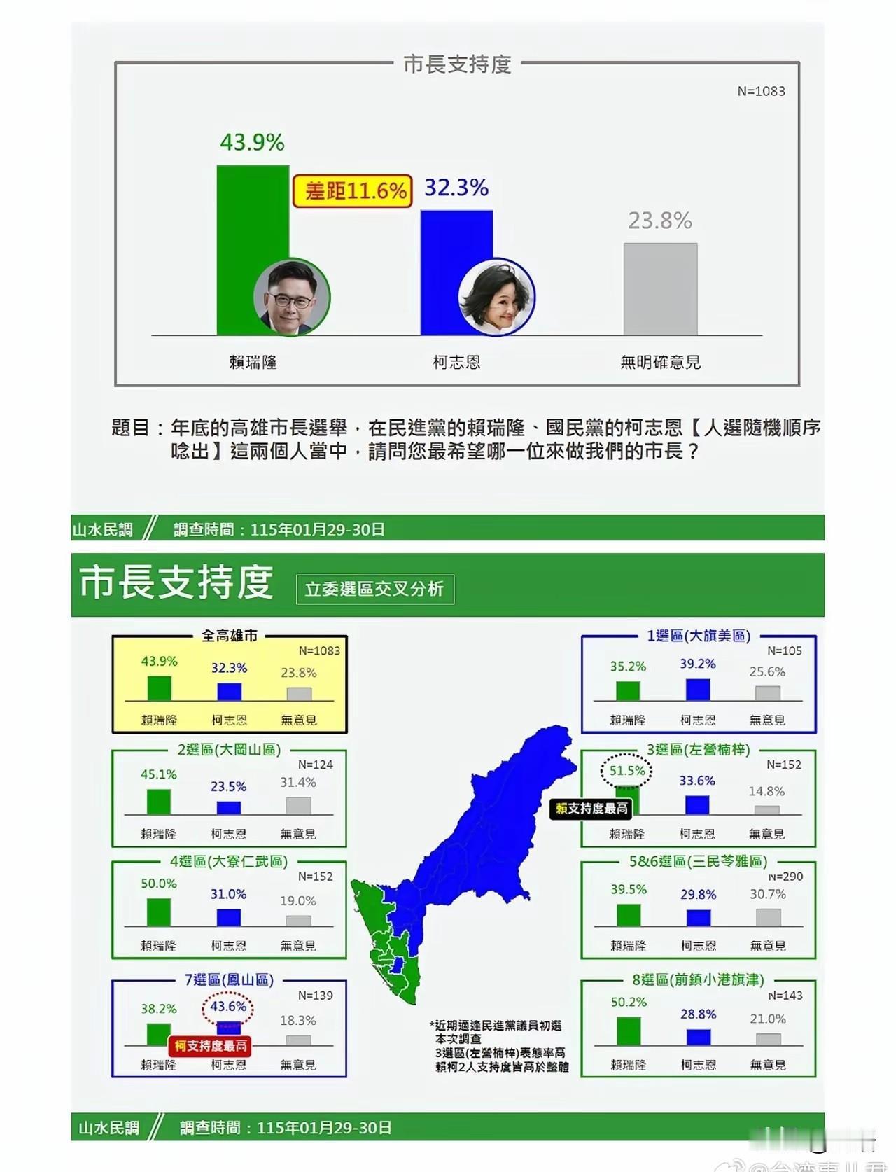不到半月,赖瑞隆民调为何大跌11.1%? 记得前不久TVBS搞了一个民调,显示柯志恩在高雄小赢赖瑞雄,但毕竟是蓝营媒体搞的民调,加权参数偏蓝,以此为参,容易失真,不过,最近“山水民调”也出来,显示柯志恩的支持率迅速与赖瑞隆在迅速拉近。 “山水民调”显示,与民进党初选民调相比,赖瑞隆下降了11.1%,而柯志恩上涨了6.8%,一跌一涨之间,赖柯差距仅剩11%。 蓝绿营民调尽管数据不一样,但均显示了一种赖降柯升的趋势,但赖所降部分并非全部转化为柯,而是观望的人也越来越多。 据TVBS的浅秋报道,她曾接触过几份未公开的民调,显示赖柯的支持率在伯仲之间。 民进党初选后,“山水民调”显示,柯志恩在凤山逆转翻盘,这里原来是林岱华的地盘,另外邱仪莹的快速退出,也让小英系人马心有不甘。 随着赖瑞隆走向前台,他的问政风格也越来越多的暴露出来,这是一种民进党早期的草莽模式,还带上了赖清德式的傲慢,他的这种风格,在他儿子的霸凌事件中展得淋漓尽致,而这种风格越来越不被台湾人民接受,相对来讲,他们更喜欢小英系文青式的陈其迈,而柯志恩似乎与此更接近。 台湾的选举很诡异,不到最后一时刻,往往很难知道结果,这里面包括党争和派系争夺,以及个人持政的风格,甚至突发事件,比如两颗子弹。