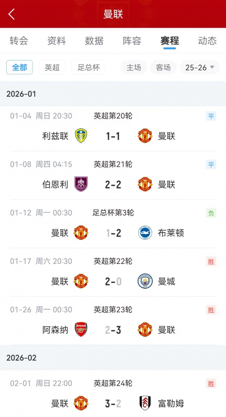 英超第20轮1-1战平利兹联后,曼联官宣阿莫林下课。随后临时主帅弗莱彻带队一平一负,卡里克上任后曼联如今已经取得3连胜。