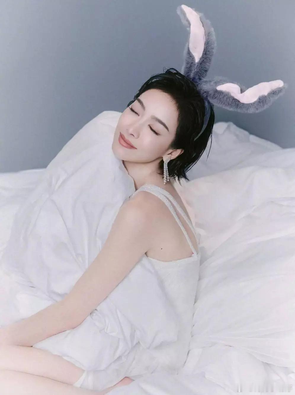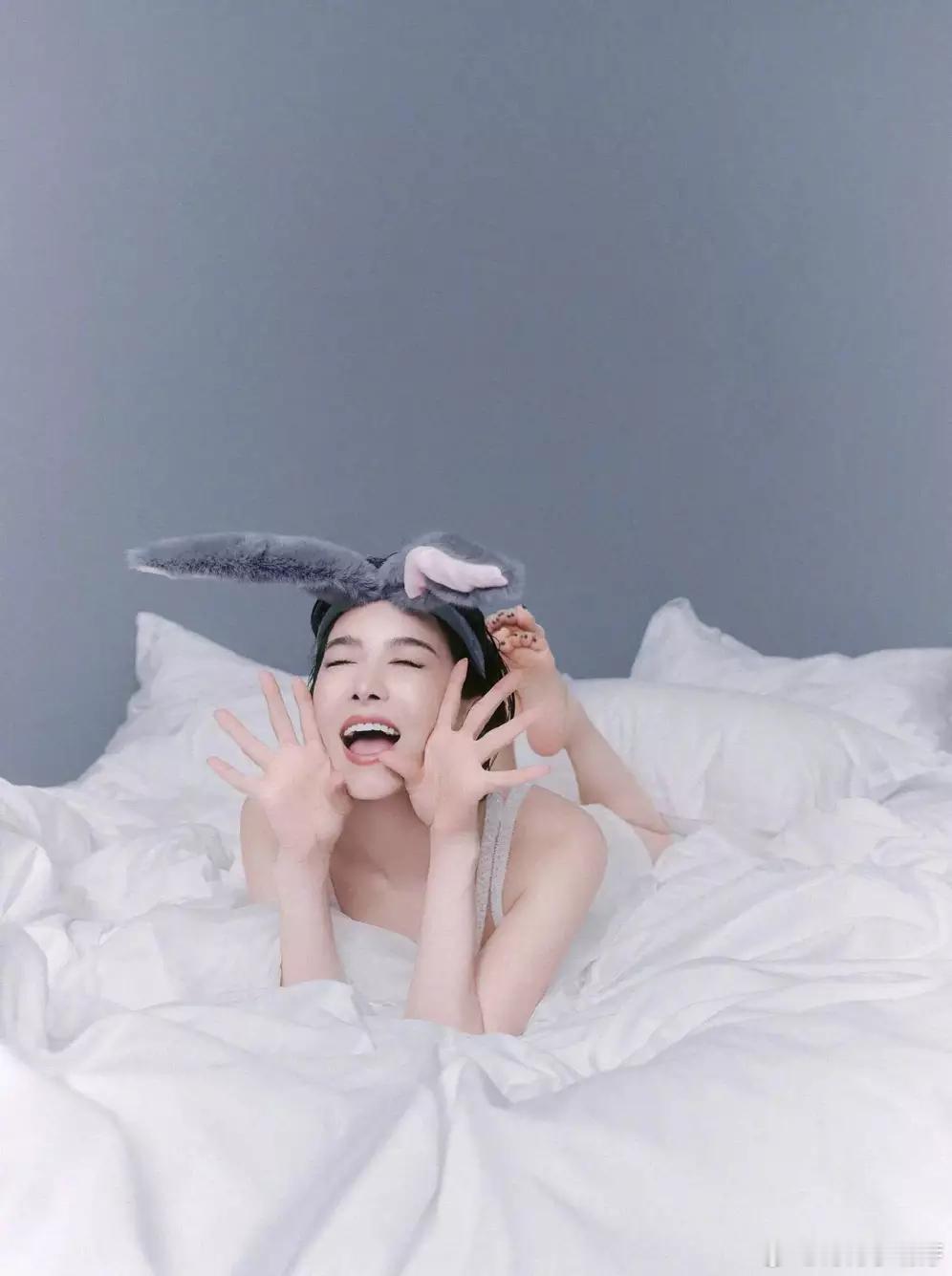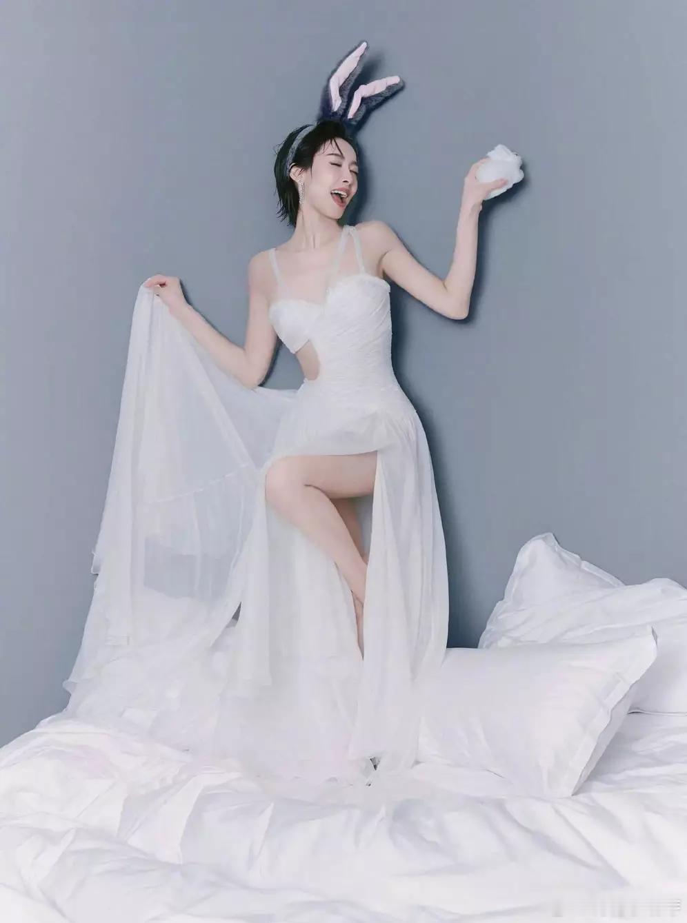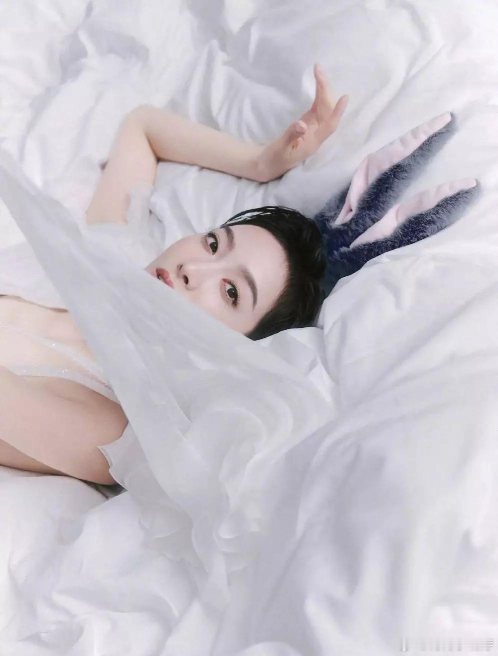 青青娱乐宋茜纱裙配兔耳发箍娇俏灵动 甜欲风造型元气满格