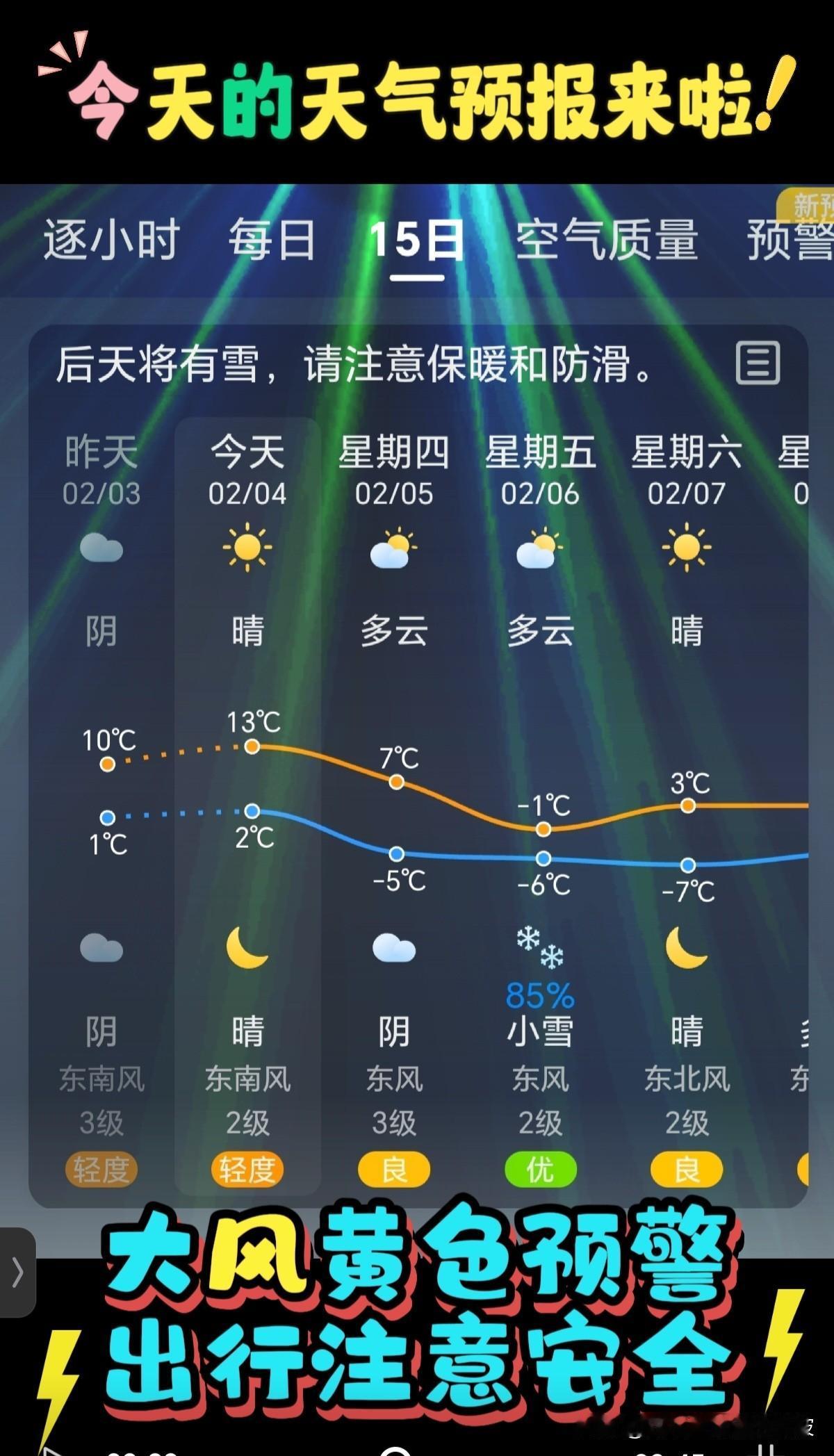 🌻早安问候🌻 𝙂𝙤𝙤𝙙 𝙈𝙤𝙧𝙣𝙞𝙣𝙜 今天是: 2026年2月4日 农历:乙巳年腊月十七 星期三 今天立春啦,春回大地,万象更新! 签到成功,获得3个创业卷,已连续签到3天! 今日天气: 晴,后天将有雪 大雾黄色预警,出行注意安全! 空气质量: 霾,中度污染 儿童、老年人及心脏病、呼吸系统疾病患者应尽量减少体力消耗大的户外活动。 气温:13℃~2℃ 昼夜温差非常大,人体感觉寒冷不适,注意添衣保暖防冻。 湿度:57% 风向:东南风西北风 风力:2级 紫外线:1级,最弱紫外线辐射天气,无需特别防护。若长期在户外,建议涂擦SPF在8-12之间的防晒护肤品。 日出:7:25 日落:17:48 ꧁ 🍄꧂ 🌷🌴🍒 今天是立春第1天第1候,距离雨水还有14天。 立春,二十四节气之首,每年公历2月3-5日交节。立,是开始之意;春,代表温暖,生长,标志着万物闭藏的冬 季已过去,开始进入风和日暖,万物生长的春季。 ʚ🌻ɞ早安,愿春风拂面,给你带来温暖与喜悦,立春安康,万事顺意,开心快乐每一天!☕️