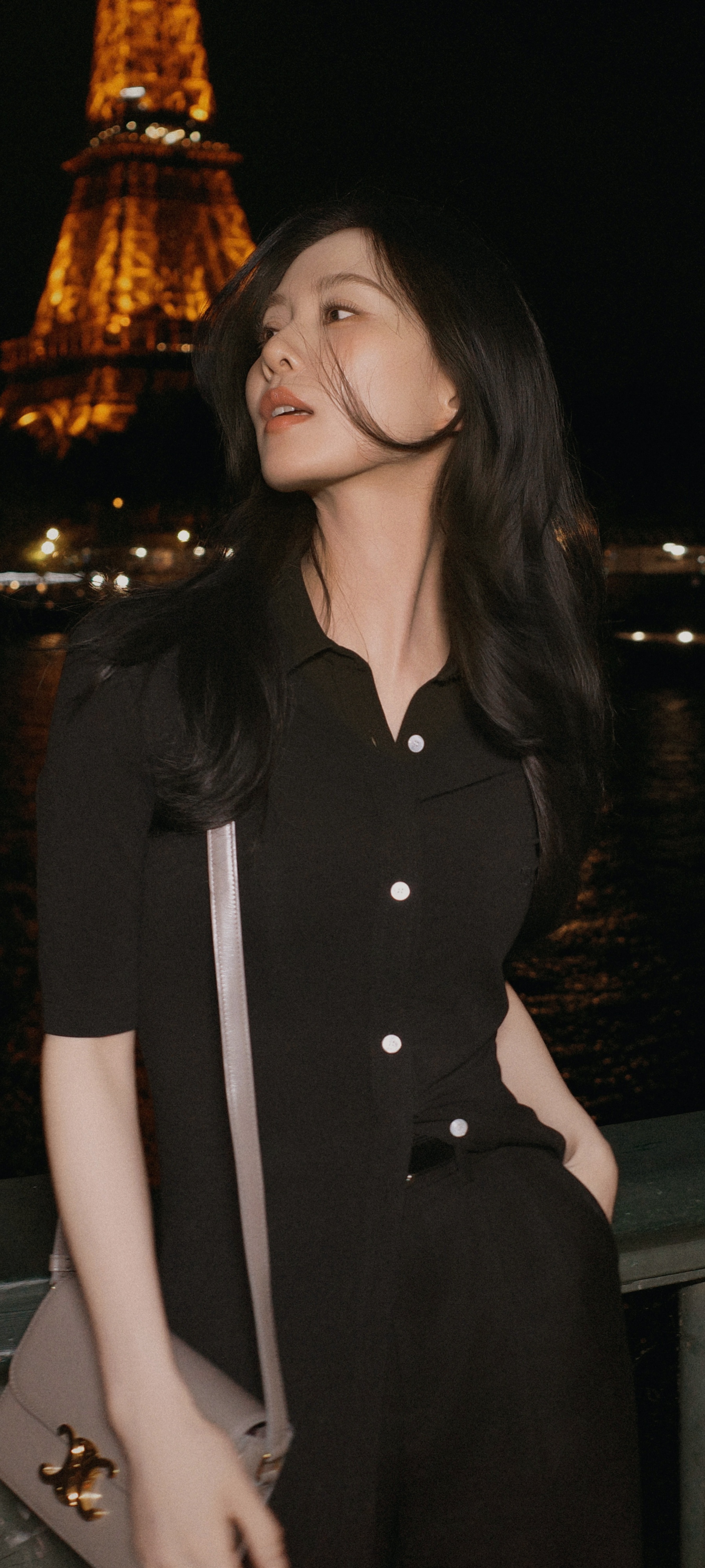 刘诗诗黑色穿搭壁纸,静谧中的温柔优雅。刘诗诗
