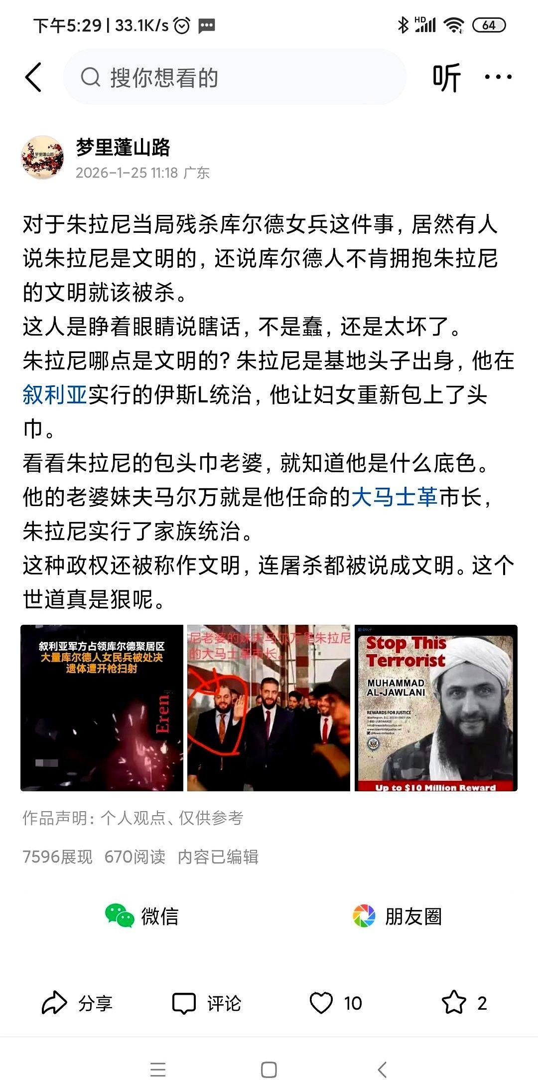 换了个马甲就不认识了? 一翻履历,好家伙,基地组织出来的。 这不叫恐怖分子,什么叫恐怖分子? 最骚的操作是,现在一堆人跑过去“投诚”,连库尔德都去了。 我就纳闷了,谁会心甘情愿让一个根正苗红的“基地”头子当自己领导? 你愿意请个贼头到你家里当总管吗? 说得通吗? 说不通的事,背后一定有更大的“说得通”的利益。 果然。 还没坐稳呢,扭头就把大马士革市长的位置,给了自己老婆的妹夫。 一家人,最要紧是齐齐整整。 绕了这么大一圈,死了那么多人,流了那么多血。 到头来,不还是“我当皇帝,鸡犬升天”那一套么。 一个巴沙尔倒下去,一个朱拉尼站起来。 本质上,有区别吗? 太阳底下,真就没什么新鲜事。