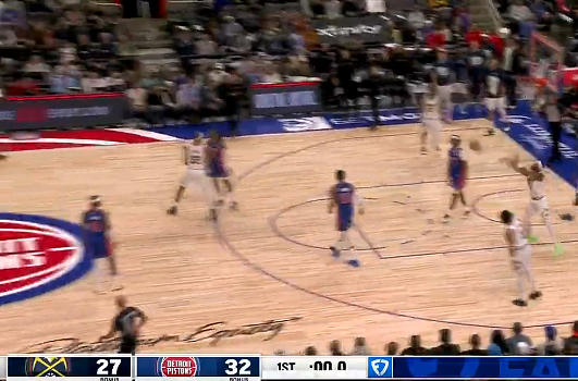掘金首节27-32落后活塞,贾马尔-默里5投2中得到13分4助攻