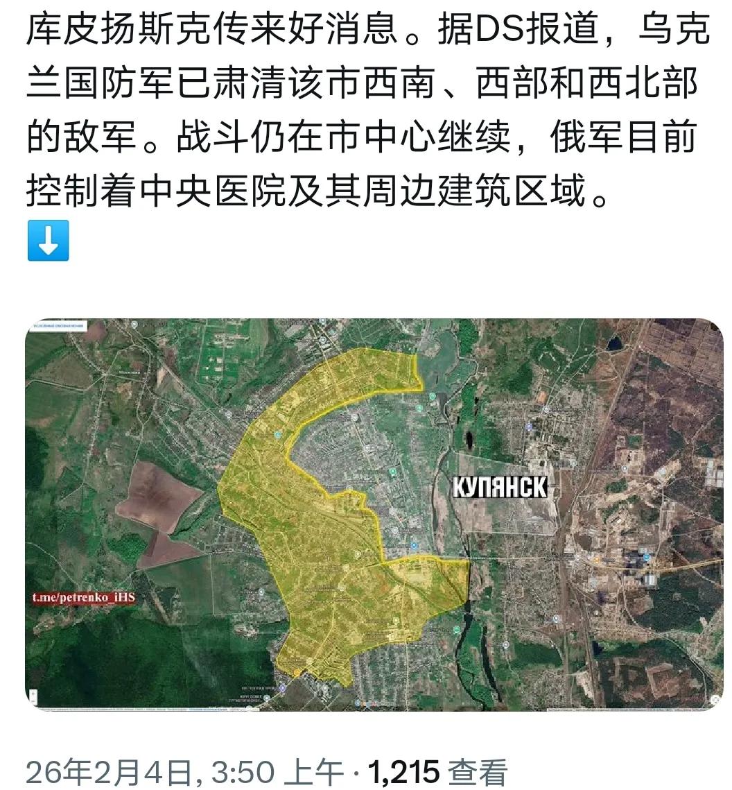乌军对库皮扬斯克的残余俄军,清理完毕。乌克兰人完全夺回库皮扬斯克主城。 库皮扬