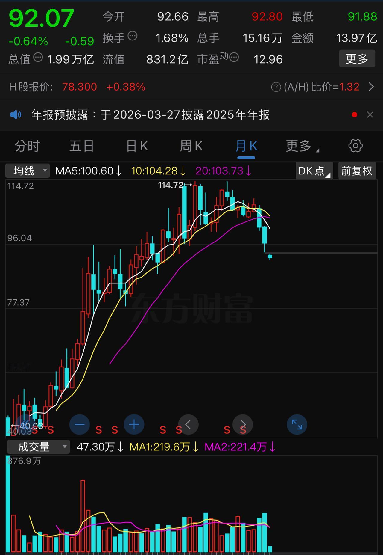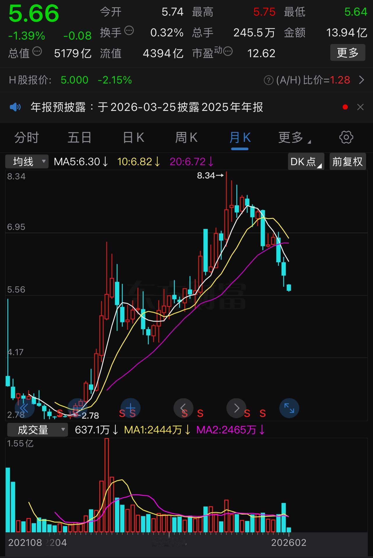 看不清四大行未来走势的可以参考一下中国移动和中国电信。 这两个票的走势对四大行未来几个月、甚至一两年的走势有一定的先导性作用。 如果说,进出小票时可能在意日线级别就可以了。但是,对于超级大盘来说,必须更多地关注周线和月线。 就四大行的月线来看,想一下,在什么情况下,它才有可能继续调头向上? 就目前来看,十分渺茫。