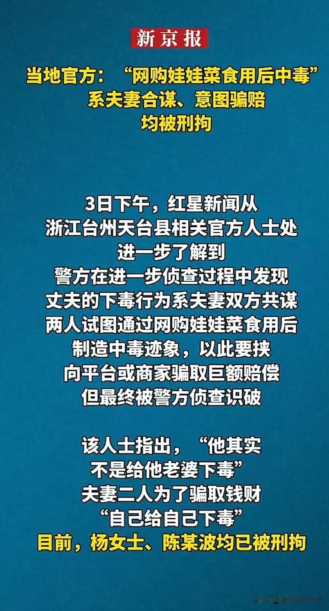 开年大戏,一波三折,怎么也没想到,最终是这样的谜底,两口子合谋对自己下毒,真够狠的。下毒放到以前还可能成功,现在对农药与老鼠药的管理非常严格,不但要追源还要登记购买人,并且有实时监控,成功的概率几乎为零。
