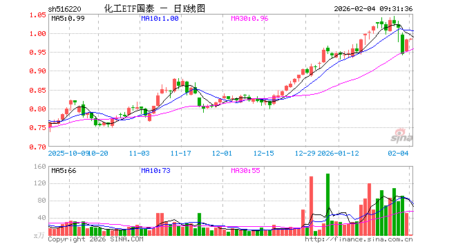 2月4日,化工ETF国泰(516220)开盘涨0.00%,报0.982元。化工ETF国泰(516220)重仓股方面,万华化学开盘涨0.55%,盐湖股份涨1.59%,藏格矿业涨0.02%,天赐材料涨0.02%,巨化股份涨0.39%,恒力石化涨1.82%,华鲁恒升涨0.33%,宝丰能源涨0.36%,云天化涨0.75%,金发科技跌0.79%。