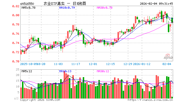 2月4日,农业ETF嘉实(516550)开盘涨1.79%,报0.794元。农业ETF嘉实(516550)重仓股方面,藏格矿业开盘涨0.02%,盐湖股份涨1.59%,牧原股份涨0.15%,海天味业涨0.00%,伊利股份涨0.15%,温氏股份涨0.32%,东鹏饮料跌1.13%,海大集团涨0.23%,云天化涨0.75%,双汇发展涨0.08%。