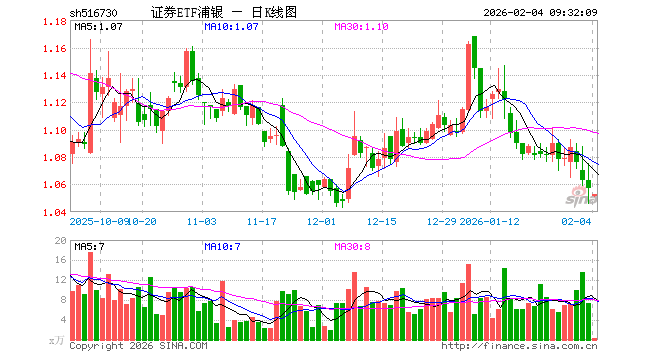 2月4日,证券ETF浦银(516730)开盘跌0.57%,报1.051元。证券ETF浦银(516730)重仓股方面,中信证券开盘跌0.43%,东方财富跌0.44%,国泰海通跌0.05%,华泰证券跌0.46%,广发证券跌0.61%,招商证券跌0.24%,东方证券跌0.10%,兴业证券跌0.30%,申万宏源跌0.20%,中金公司涨0.17%。