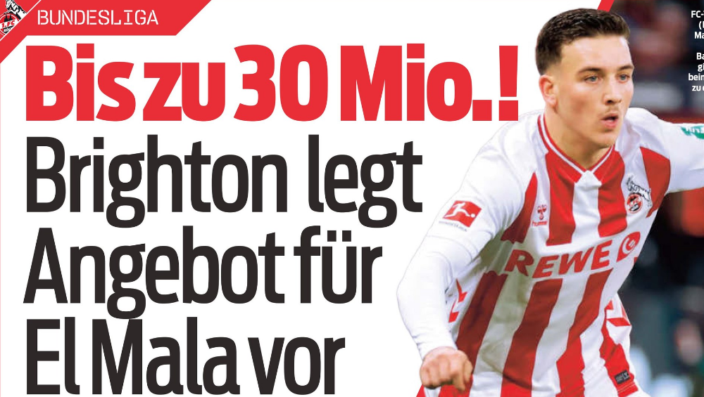 埃尔-马拉现在考虑加盟英超联赛,并且已经向科隆俱乐部表达了这一意愿。据《体育图片报》报道,布莱顿为他提供了一份未来五年约1500万欧元的固定年薪(外加奖金)。