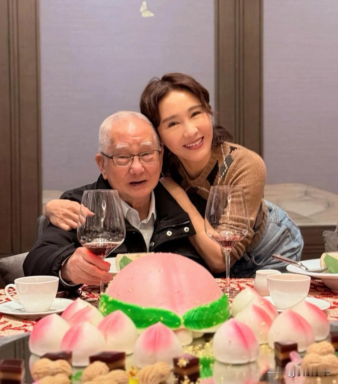 黎姿在酒店为父亲庆祝88岁生日,妈妈、弟弟黎婴都在场,桌上摆着蛋糕和寿桃,看起来