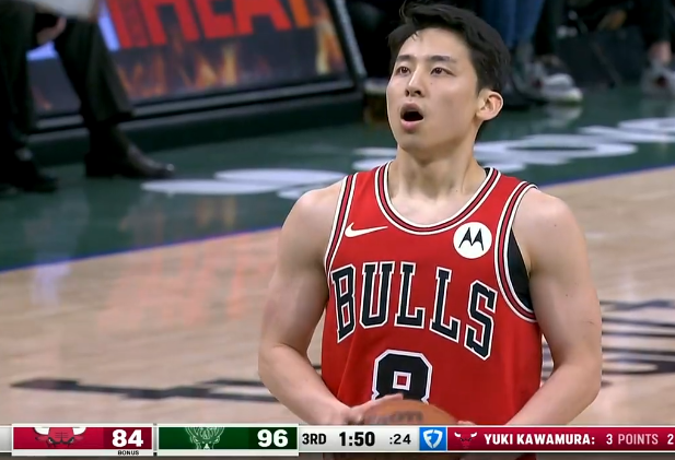 第三节比赛中,河村勇辉造成犯规两罚全中,目前三分2中1得到5分2篮板2助攻。