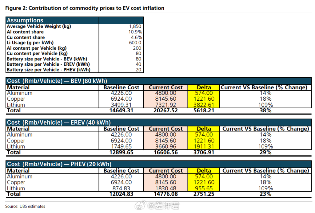 根据瑞银,过去三个月内,锂涨了115.4% ,铜涨了19.9% ,铝涨了14.5% ,将导致一辆中型电车的生产成本提高4000到7000人民币。如果抛开这三个月,咱们再把视线拉长,你会发现这些原材料确实是一直在涨,这几天的连跌根本连防都破不了。
