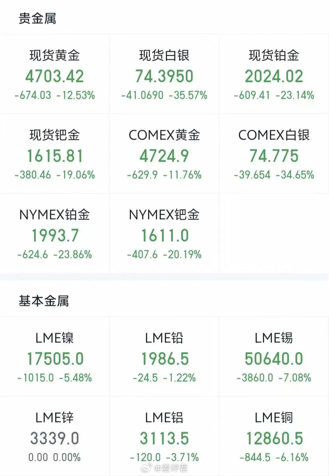 #贵金属涨价影响汽车行业# 最近买黄金、白银的兄弟们,是不是过得很刺激。但大家可能都没想到的是,这次大跌可能还会影响到汽车的价格。因为和汽车行业密切相关的铜、铝、锂这些矿产资源,也都被干出了闪崩。