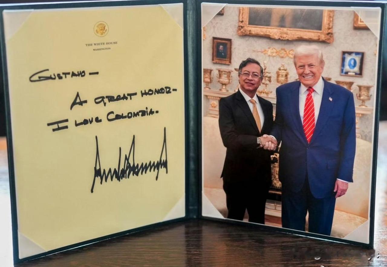 哥伦比亚总统佩特罗今天访问白宫,与美国总统特朗普进行了“亲切友好”的交谈。 川普透露,哥伦比亚总统佩特罗在马杜罗遇袭后突然转变态度,变得“非常友善”。 “他之前一直很批评,但不知怎么的,在委内瑞拉遇袭后,他突然变得非常友善!他改变了态度!” 特朗普称:他人很棒,我热爱哥伦比亚,我会帮他搞经济。 一个月之前马杜罗被抓之后还在向美国喊话“来抓我阿”的哥伦比亚总统佩特罗,现在好像和川普成了好基友。 还邀请特朗普去哥伦比亚玩。 川普则送佩特罗有自己签名的 MAGA帽子(America加了s成了美洲)和书(上面写着“You are great”)。 两人没有联合声明,川普允许佩特罗在室内开新闻会,不像Zelensky只能在马路对面人行道上开。 哥伦比亚民众很高兴看到矛盾缓和。