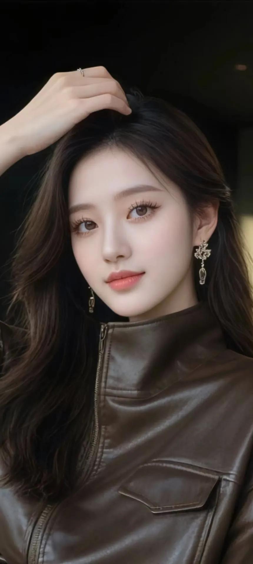 你喜欢哪一种气质的美人?复古卷发配艳红蔷薇发饰,一袭棕皮抹胸裙衬出利落身段,她