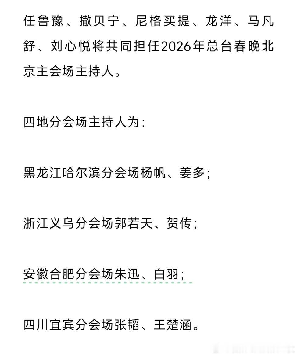 2026春晚主持人阵容据央视新闻消息,2月4日,中央广播电视总台《2026年春节