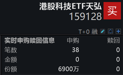 值得一提的是,港股科技ETF天弘(159128)盘中净申购份额已达6900万份。
