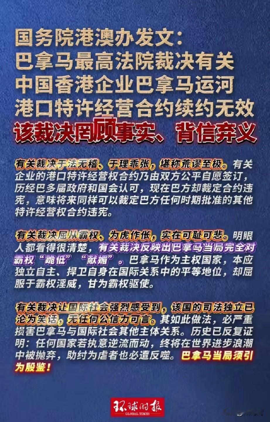中国罕见硬核反制巴拿马港口裁决,背信毁约必付代价!近日,巴拿马最高
