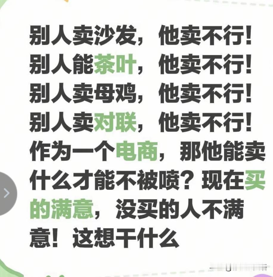 奇怪,奇怪真奇怪,与辉同行直播间里买东西的人满意的乐呵呵的,没买东西的人不满意叽叽歪歪的;别人卖沙发可以,他卖就不行;别人卖茶叶可以,他卖就不行;别人卖母鸡OK,他卖还是不行;别人卖对联可以,他卖仍然不行!就弱弱的问一句黑子们,他干的就是主播这行当,他卖什么可以?找谁批准?奇怪奇怪真奇怪,小黑子脑袋长的不歪,咋就心眼这么歪咧?谁能评论一下?辉同行橱窗 董宇辉带货技巧