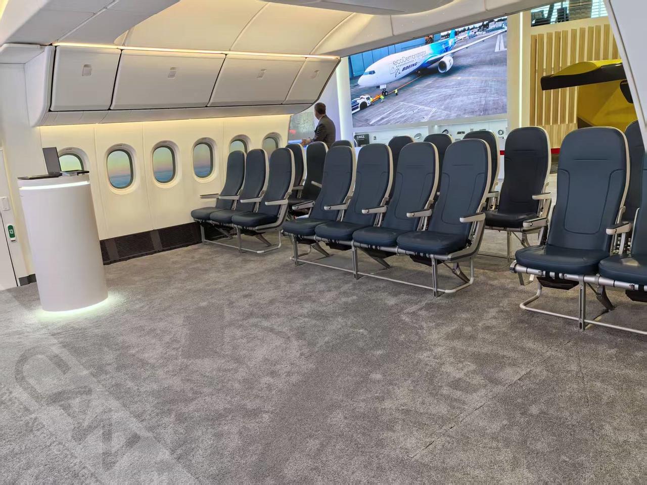 波音亮相第十届新加坡航展,在室内展区展出777X客舱内饰方案与航电设备。(摄影: