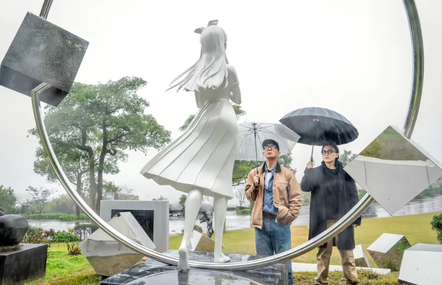 雕像旁的碑文如此写道:“这是一座为熙媛而存在的宇宙。她的丈夫具俊晔以雕塑为她留下一条不会终止的轨道,让思念持续运行。”