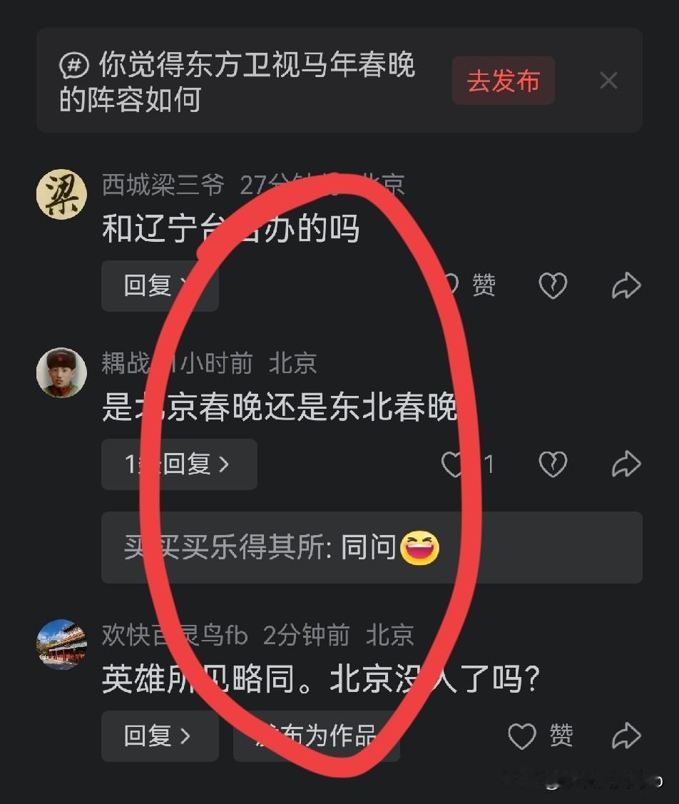 北京春晚演员阵容被北京人质疑“北京春晚还是东北春晚”? 央视马年春晚主持人阵容刚刚发布,北京春晚演员阵容也露面了。白凯南、程野、大兵、宋晓峰、文松和杨树林率先亮相。第一个感觉就是“东北兄弟有点集中”。其实,他们都是优秀的小品演员,在社会上很有影响力。只是碰巧都是东北一个地方的,又是“北春”的常客,给人的感觉怪怪的。 要不,“就地取材”,以北京籍演员为主——不谦虚的说,全国各地比起来,作为文化中心的北京籍优秀演员绝对不遑多让; 要不,“五湖四海”,体现大国首都特色,广揽天下人。