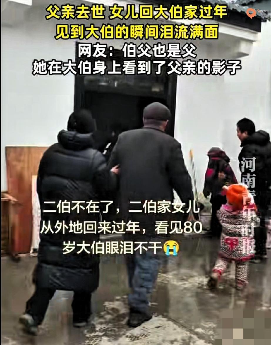 安徽一位女子刚失去父亲,这个年,她连个去处都没有。 就在她最无助的时候,80岁的大伯主动喊她回家过年。 一进门,看到那张和父亲有着相似眉眼的脸,她所有的坚强瞬间崩塌,抱着大伯哭成了泪人。 大伯没说太多安慰的话,只是轻轻拍着她的肩。 这一拍,是替弟弟守护女儿的责任,也是无声的接纳:别怕,你还有家。 原来,亲情从不是单向的。父亲走了,但他的血脉还在,那份爱也以另一种方式延续着。 大伯家的灯火,就是她最暖的归途。 过年的意义,从来不是一桌饭菜,而是有人等你、疼你、不放弃你。 你有没有被这种隔代的亲情温暖过?评论区说说你的故事。