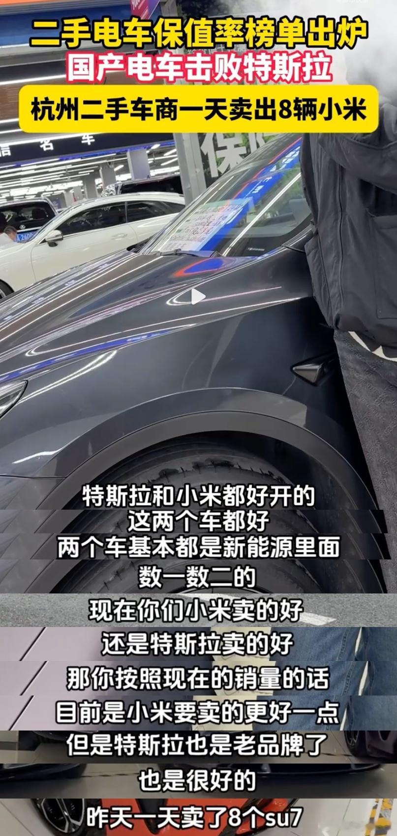 杭州二手车商一天卖掉8辆小米这不就狠狠打脸那些之前摆拍下跪、做法、哭穷、哭惨视频博流量的二手车商么,杭州有一二手车商反馈近期小米二手车销量表现较为突出,一天卖了8辆SU7,这说明小米二手车流通很好啊,年前大家都想有一部车开车回家过年。