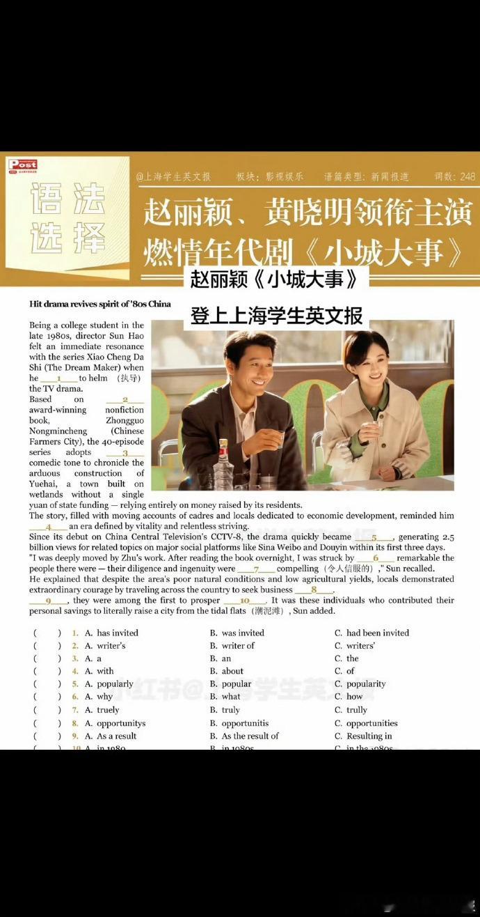 佃平 1 2026-02-04 20:58 赵丽颖小城大事太棒了,今年开年的正能量的一部作品,赵丽颖号召力太强大了,李秋萍跳的十六步舞姿火了,全网都在跳,李秋萍郑德诚年代的代表人物,一切为百姓着想,全心全意为人民服务!