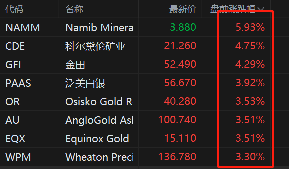 格隆汇2月4日|金银价格回升,美股黄金股盘前集体走强,NamibMinerals涨近6%,科尔黛伦矿业涨近5%,金田涨4.3%,泛美白银涨4%,AnglogoldAshanti、ArisMining等多股涨超3%。