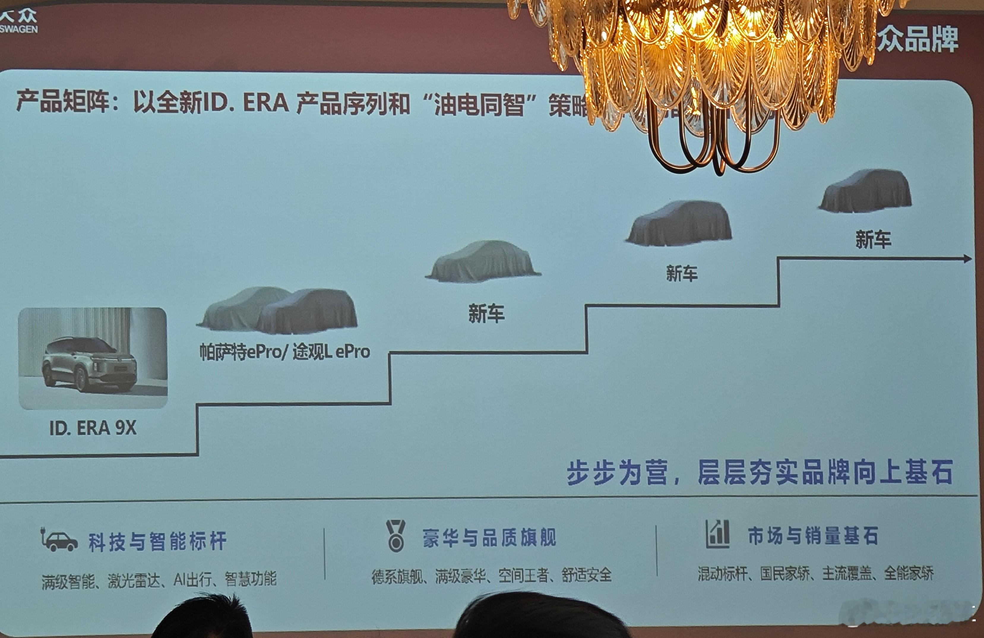再看今年的产品投放动作,4月上市增程旗舰ID.ERA 9X,6月发布帕萨特和途观L的插混版ePro,还有8月一款插混紧凑级轿车,9月一款增程中型SUV,10月一款纯电紧凑级SUV,以及北京车展首发、年中上市的AUDI E7X,节奏密集,能源类型多元,在燃油回暖的档口加快补齐新能源的作业——但这些产品大都又和大众的根基,EA211这个金字招牌有强关联