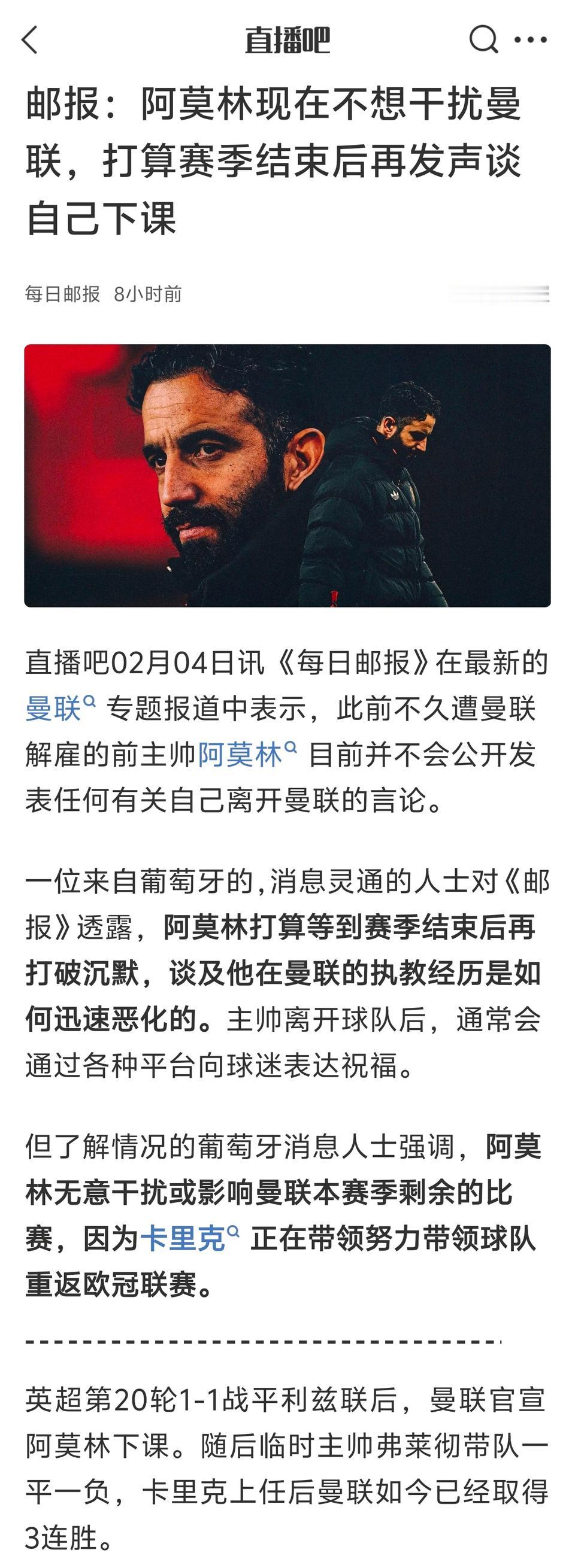阿莫林仗义,他现在不谈曼联下课历程,避免干扰曼联本赛季征程。 想听故事的,咱们