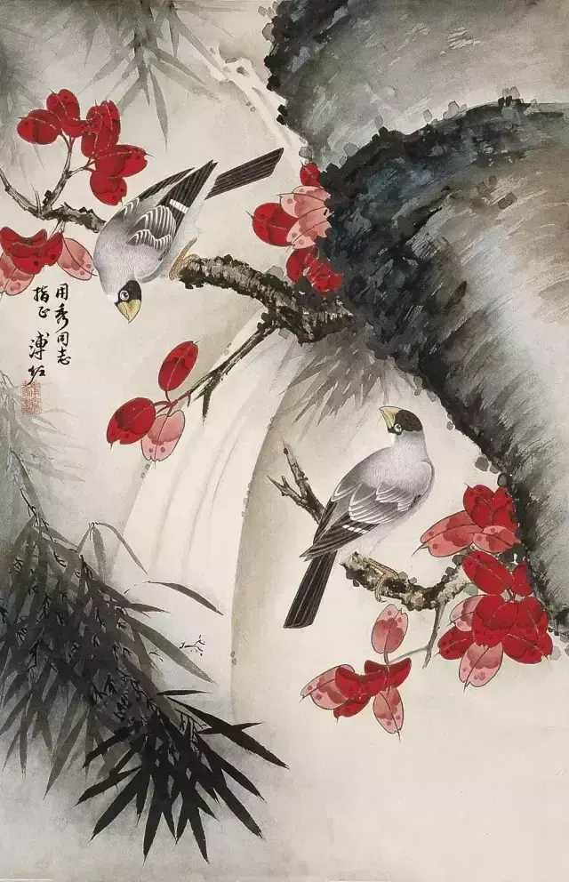 唐云《花卉草虫册》,册页(八开) 水墨纸本、设色纸本,37.5×28.0 cm (每幅)。唐云山水花鸟兼擅,尤擅花鸟,这本《花卉草虫册》画在1960年代初,四开水墨,四开设色,写梅兰竹菊、芙蓉红荷、秋叶蔷薇。这就是中国风遇见艺术