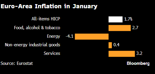 1月消费者价格同比增长1.7%,较上月增速放缓,与彭博调查经济学家的预估中值一致。这是自2024年9月以来最弱的读数。