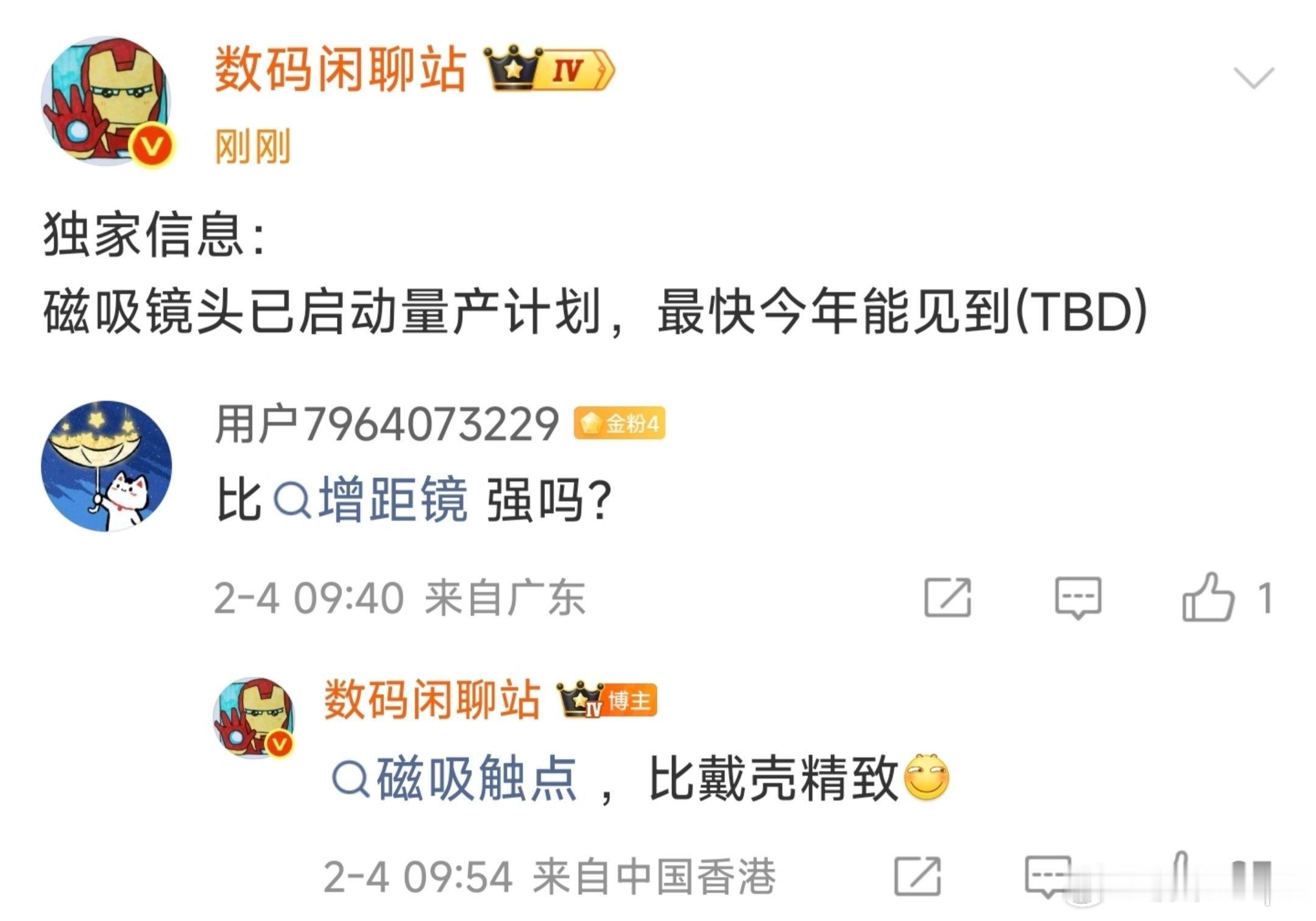 小米磁吸镜头被曝已启动量产计划小米磁吸镜头要量产了📸M4/3大底+35mm f/1.4,10Gbps高速传输今年就能安排,手机摄影直接进阶懂行的已经在蹲了😏