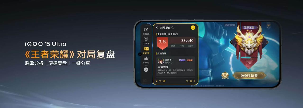 蓝河流畅引擎加持,iQOO15 Ultra可五年全场景重度使用持久流畅。 ①游戏空间:支持自定义游戏封面;能够整合并分类管理全部下载或关注的游戏,完成游戏的更新、卸载等常用操作; ②对局复盘:对局结束后自动生成分析报告;根据游戏表现,为你认证不同称号;支持一键生成长图; ③智能便捷:趣味光栅锁屏、堆叠式锁屏通知、原子动效6.0、小V圈搜2.0、全功能NFC等智慧便捷功能。 iQOO15 Ultra新品发布