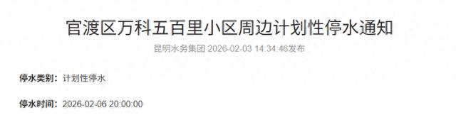 停水时间:2026-02-0620:00:00