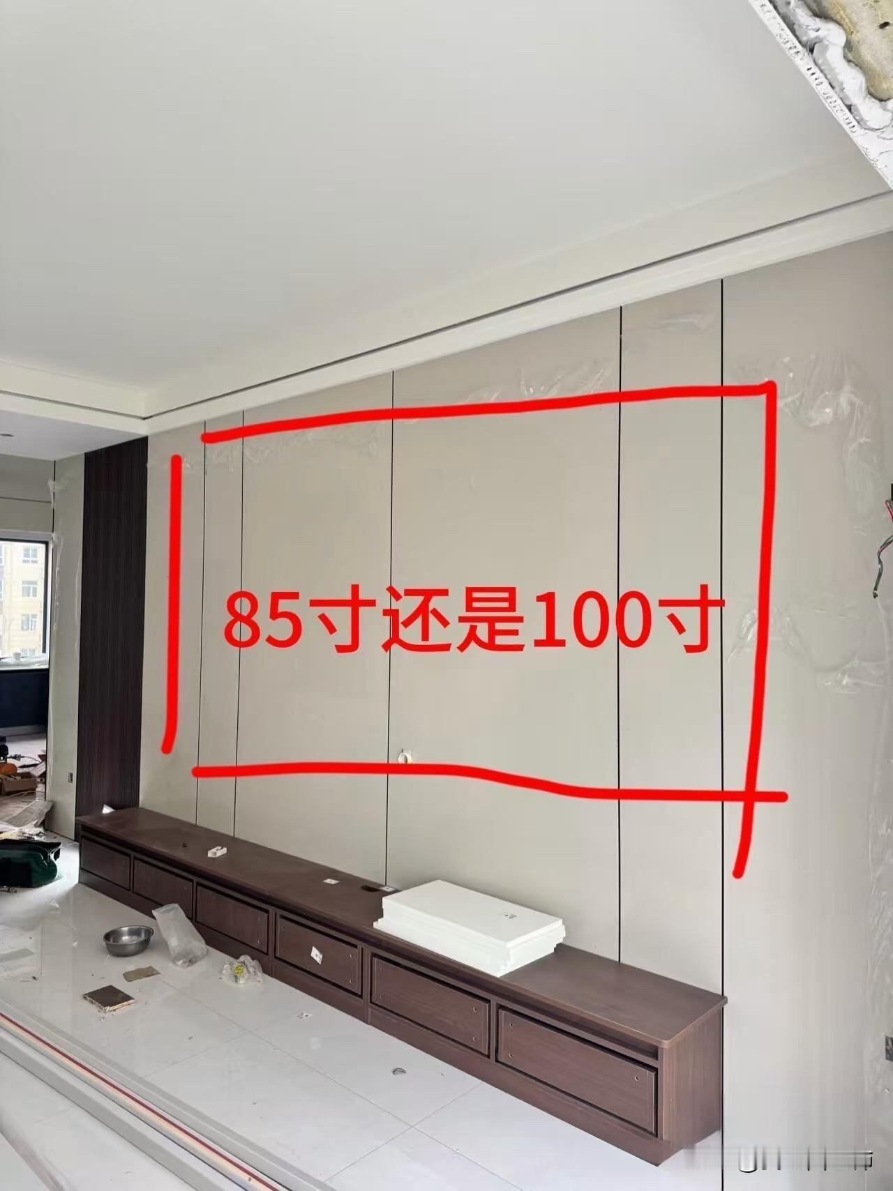 客厅开间4米,选100寸还是85寸?!急! 先说一下我家的客厅开间是4m、背景墙是3m,早早就决定要买海信小墨e5qpro,但是一直在纠结买85寸还是100寸,希望刷到的姐妹给个建议! 85寸的话我看jd详情页说用的是墨晶屏,说这个屏幕不反光,看了买家秀感觉还不错,但是挺多人都给我说买大不买小,害怕买回来上墙有点小了,到时候不合适还得折腾退换,有点麻烦!! 100寸是黑曜屏pro,虽然价位高点但是也更大了,主要听说这屏幕暗部细节什么的超清晰,而且我俩平时玩游戏,大屏幕可能更施展的开些,唯一就是有点担心上墙的效果,会不会显得空间太小啊? 真的是85寸挂上墙怕太小,100寸挂上墙怕太大! 纠结死我了! 所以有没有买过这两个尺寸的宝子啊啊啊啊,你们家开间都多大啊!? 像我家这种4米开间选择哪个尺寸更好啊?