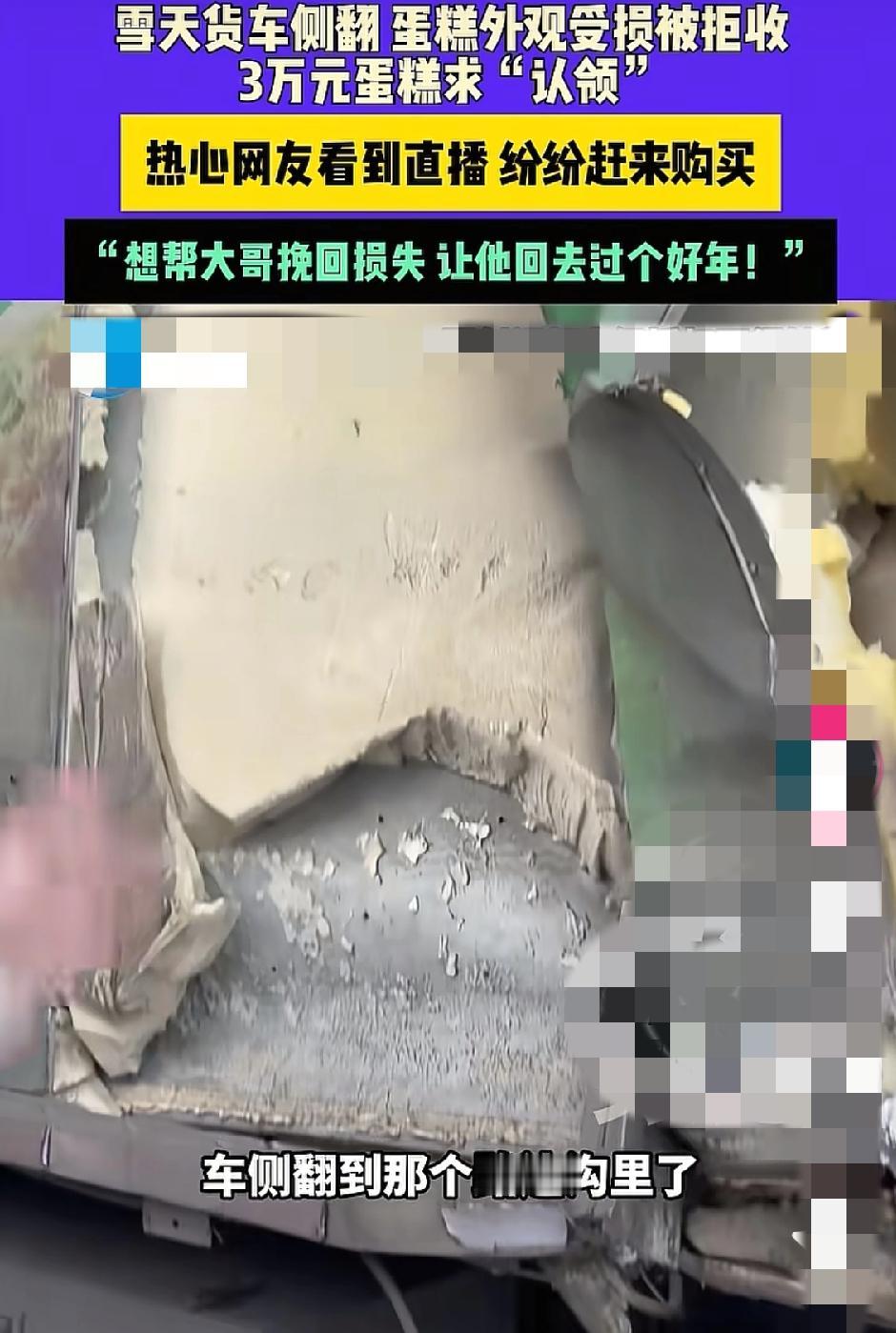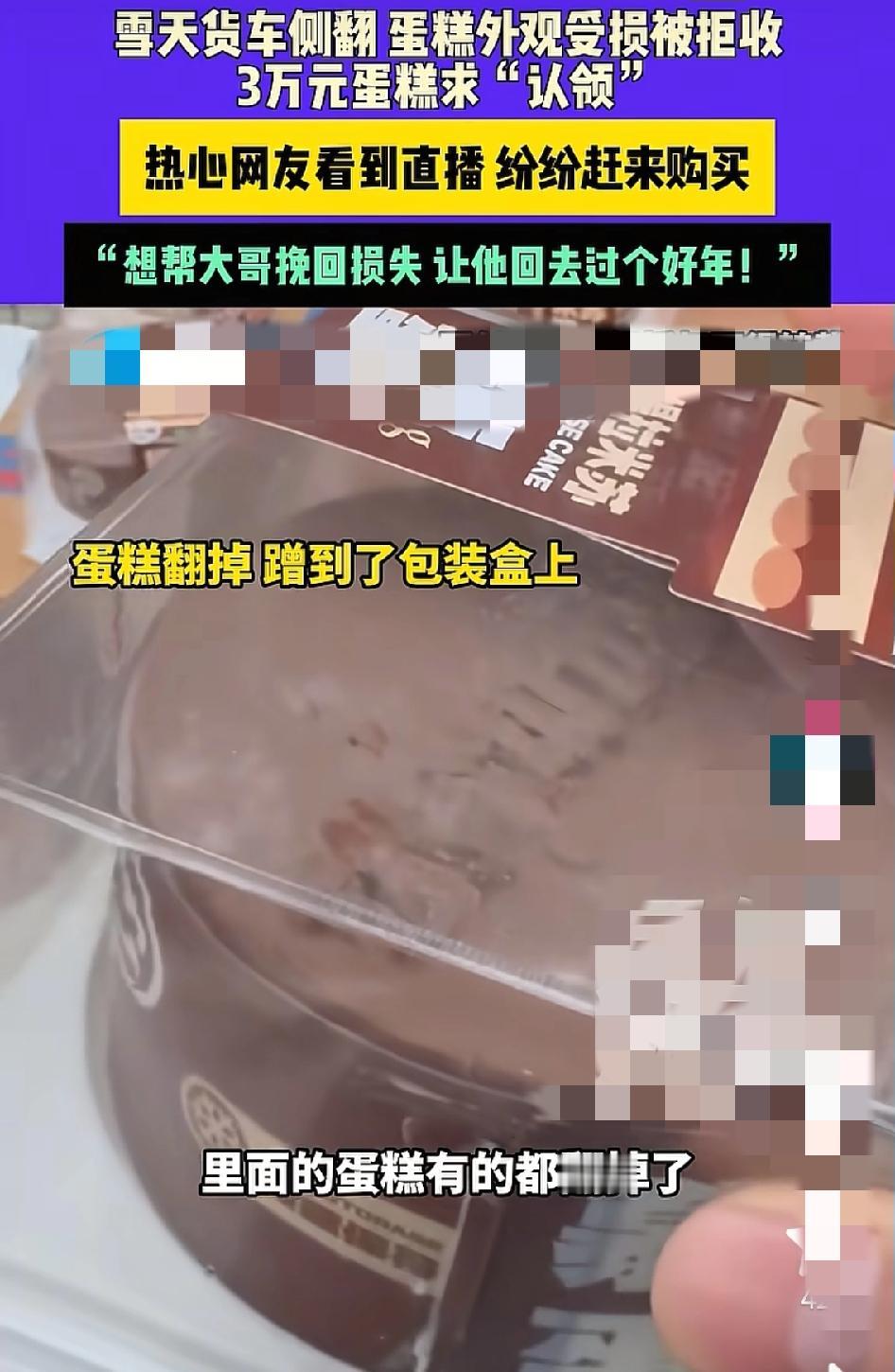 雪天货车侧翻,3万元蛋糕外观受损被拒收,热心网友赶来“认领”太暖了! 郑州的秦师傅拉着一车蛋糕赶路,遇上雪天路滑,车直接翻进了路边沟里。好好的蛋糕全蹭变形,买家一看这模样直接拒收,眼瞅着三万多块钱要打水漂,秦师傅急得眼睛都红了,只能在路边守着卖,可冻得硬邦邦的蛋糕,谁也不敢轻易买。 没想到直播一发出,附近的网友们纷纷赶过来,有人一买就是好几盒,说“外观不影响吃,能帮大哥少亏点,让他能回家过个好年”。其实这蛋糕就是颜值受了点伤,味道一点没差,网友们的举动,不光帮秦师傅挽了损,更暖了在外奔波打工人的心。 有时候善意真的能瞬间拉近距离,你遇到过这种暖心的小事吗?货车司机翻车