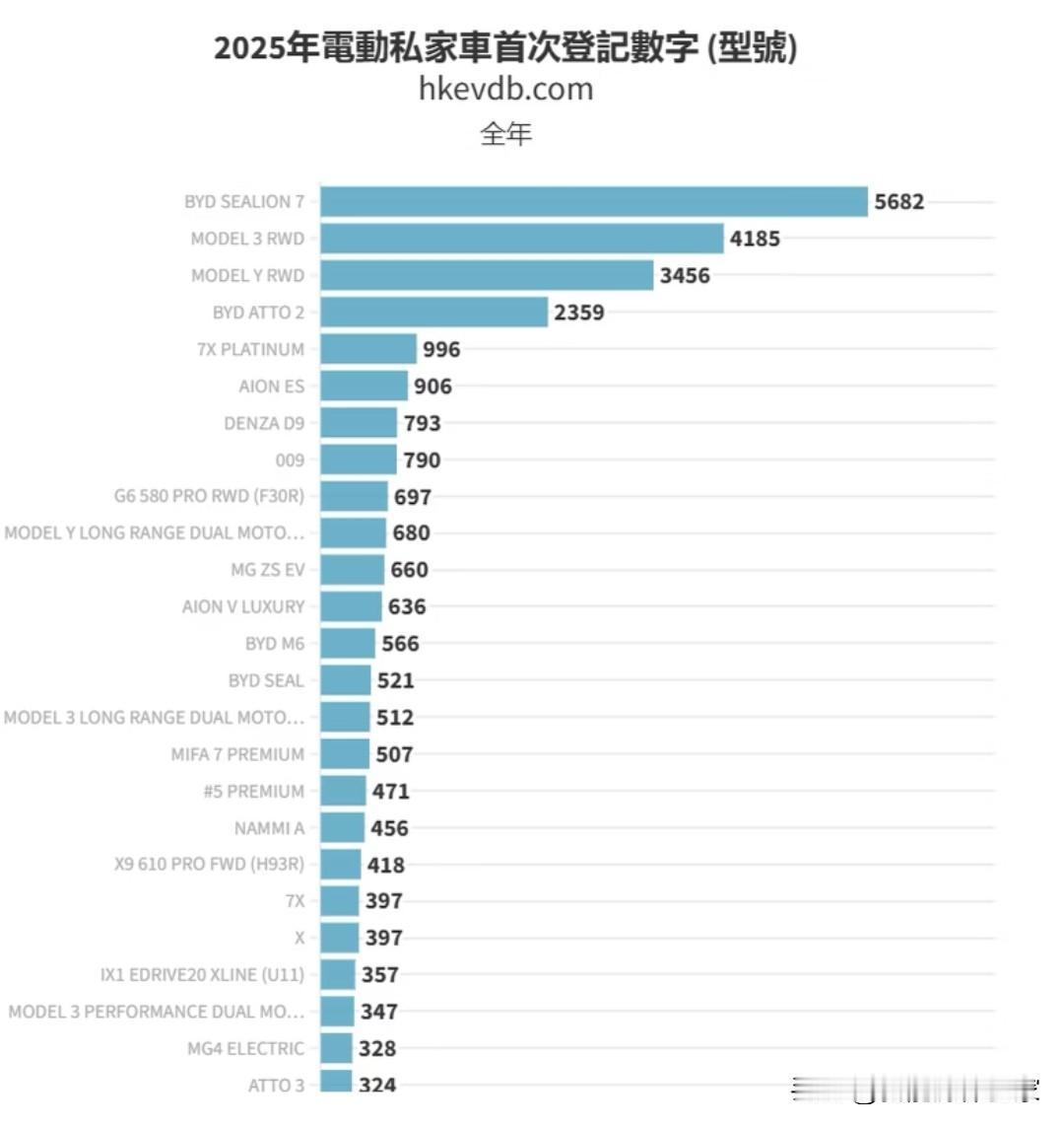 香港2025电车销量Top10, 比亚迪占3席! 海狮7单车型断层第一,ATTO