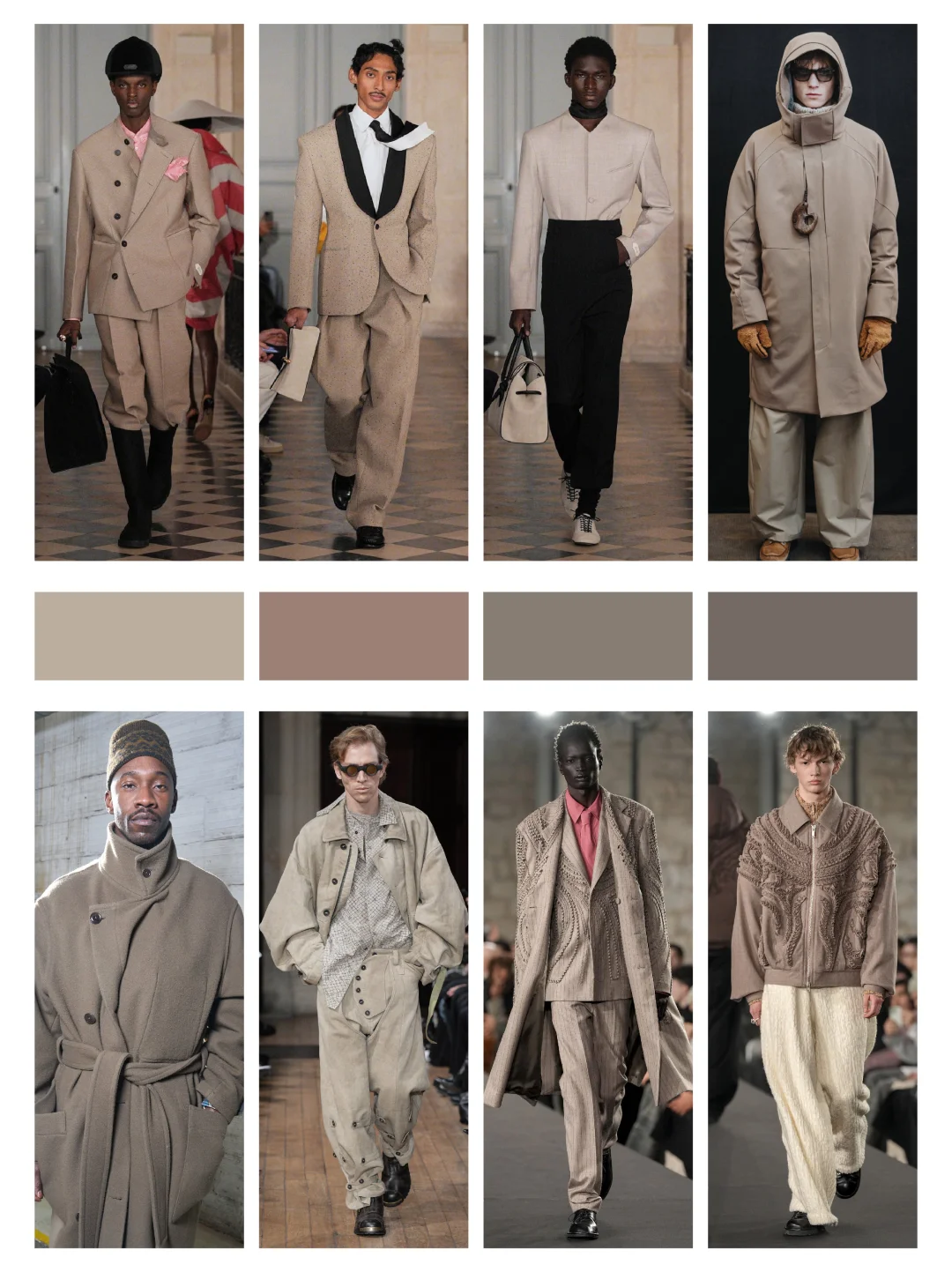 2026米兰男装周秋冬季色彩趋势,不再追求喧嚣的视觉刺激,转而致力构建一个稳固、成熟且富有内在张力的情感衣橱。