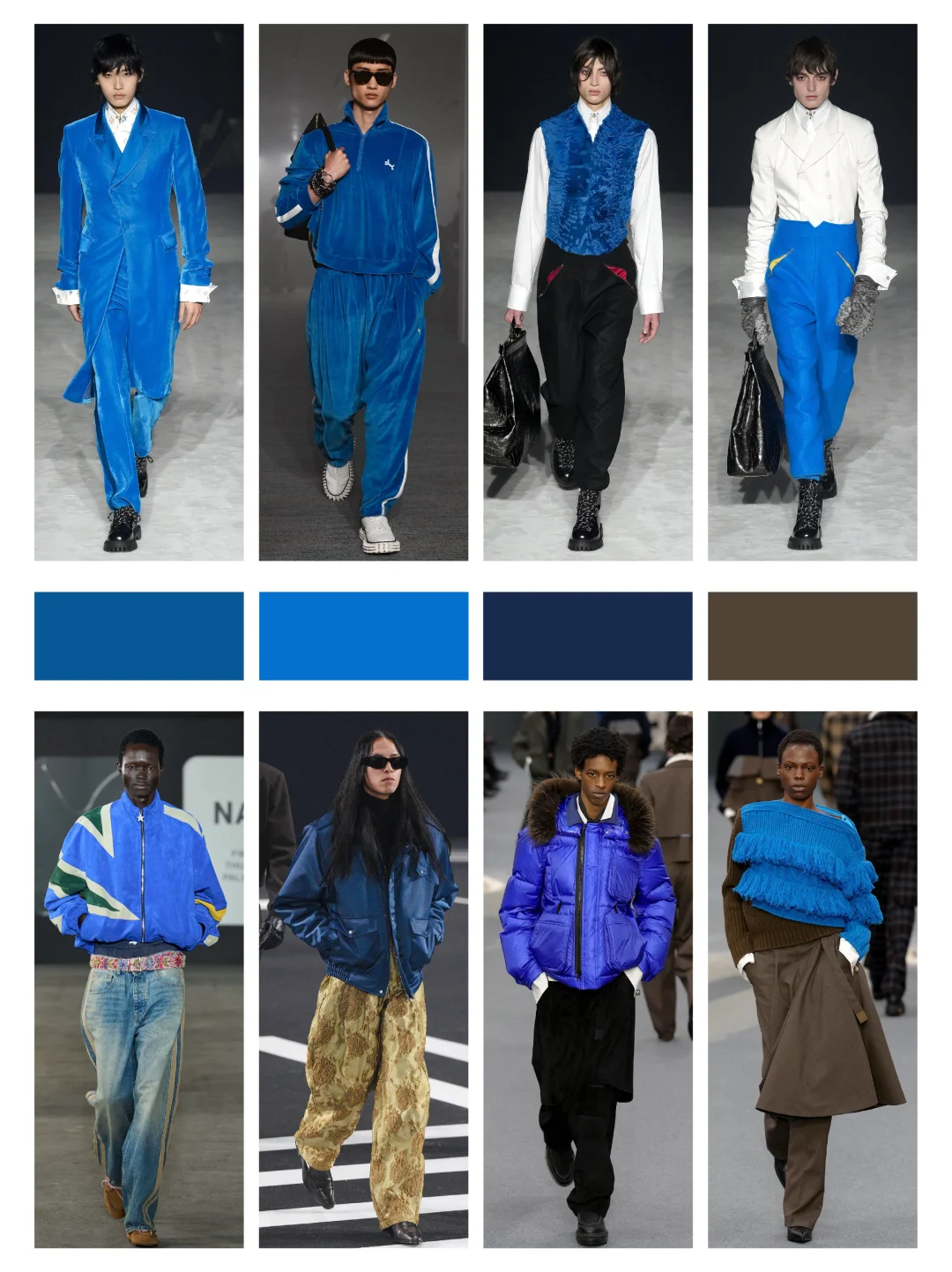 米兰男装周秋冬色彩趋势潘通色彩男装搭配高级感穿搭时尚趋势时装周解读设计师品牌栗色穿搭维多利亚蓝