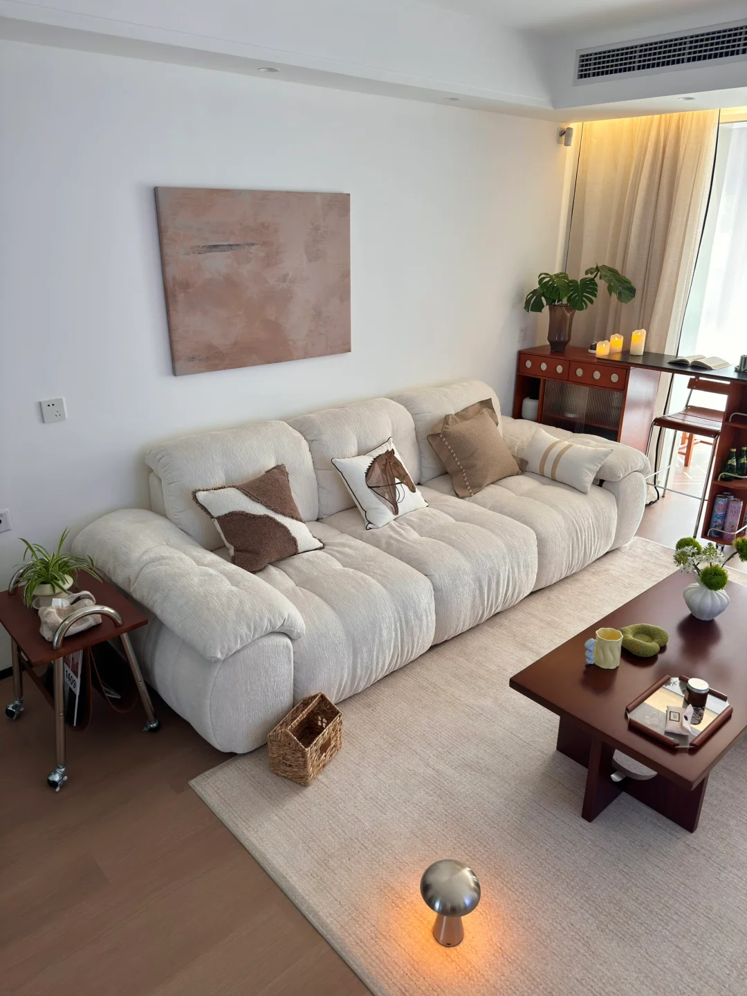 在小县城安家 🏠建面135平 套内110平 全程自装 历时四个月把房子变成了家🏠 我家客厅尺寸 4m×4m 直排沙发2.8m 客厅也成了我们宅家待的最久的地方 从两个人到三口之家 每一个平常的日子里全是幸福~