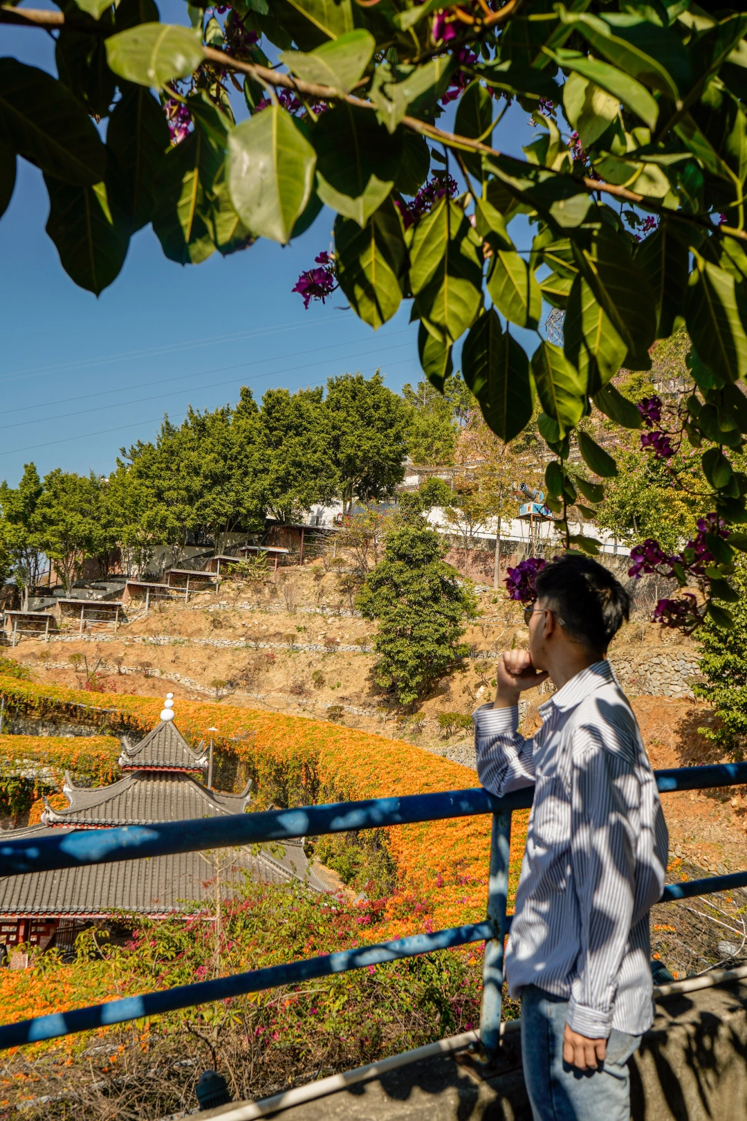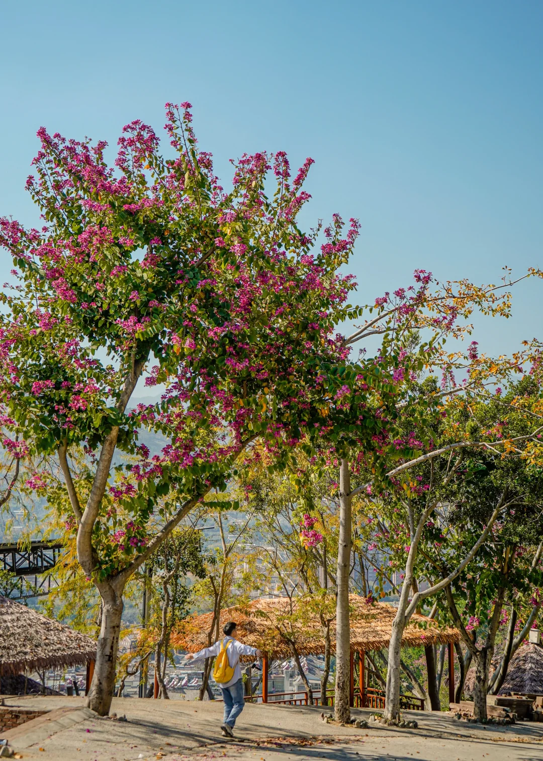 距离市集很近,可以步行前往,路边多花,一路向上像走在花路上,紫荆花、炮仗花、攀枝花。遗憾的是去的时间错过了最佳花期,山顶的炮仗花凋谢了许多。在上午逛穿穿着春装晒着太阳逛公园,舒服极了。