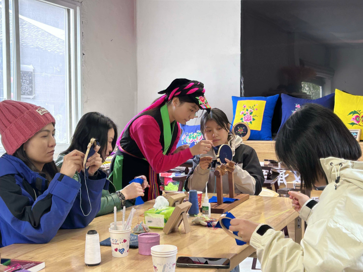 过去一年,赵松梅不仅自己带领游客体验刺绣,还组织起村里20余位妇女,经培训后共同承担起了讲解、刺绣教学、餐食准备等工作,形成“灵活排班社群”,他们已经接待了上百组来自全国各地的游客,让小院热闹起来的同时,也带来了实实在在的收入。